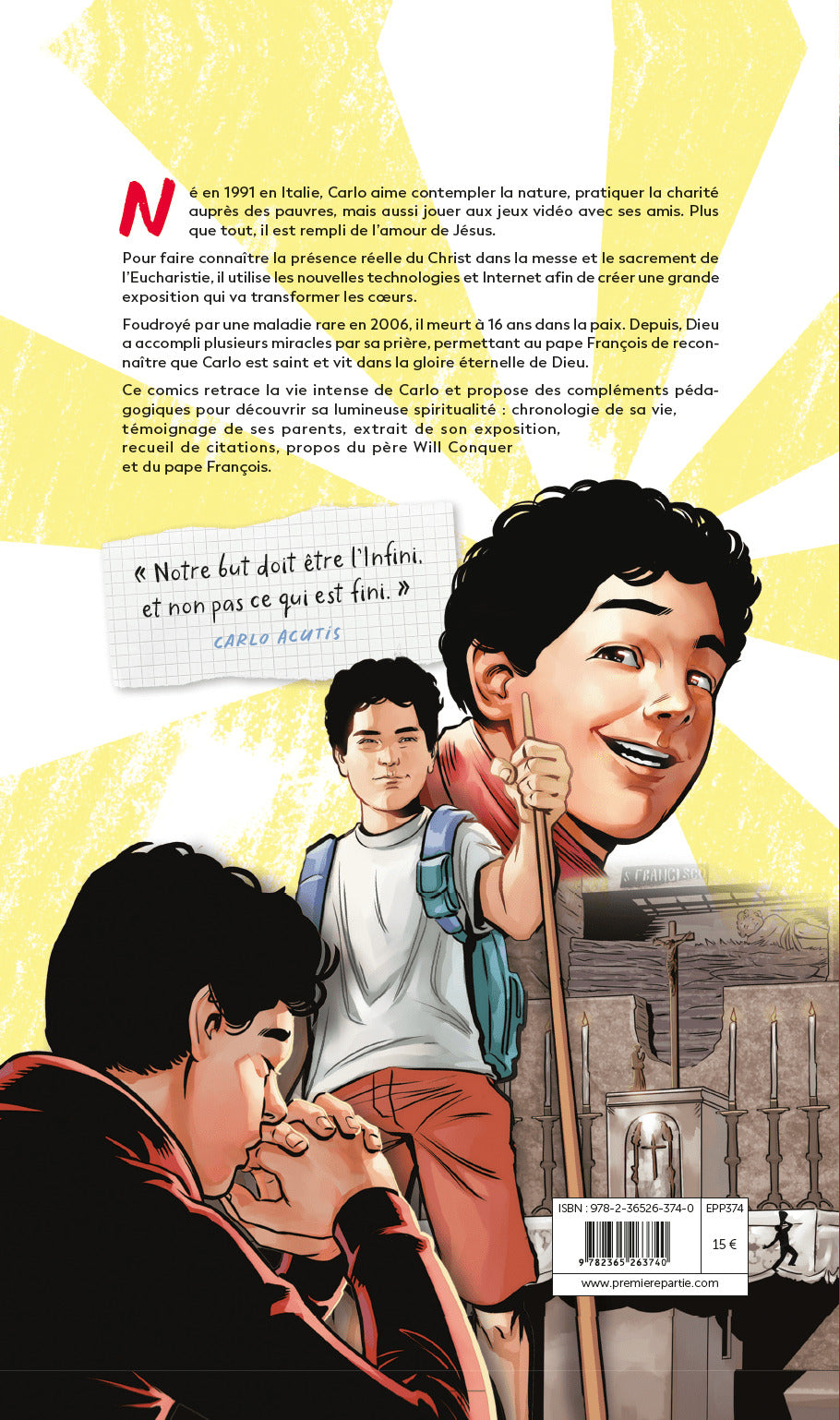 La vie de Carlo enfin racontée sous forme de comics, pour la première fois en langue française ! Cette biographie en bande dessinée propose de découvrir la personnalité, la vie et la foi intenses de l'apôtre du Web.