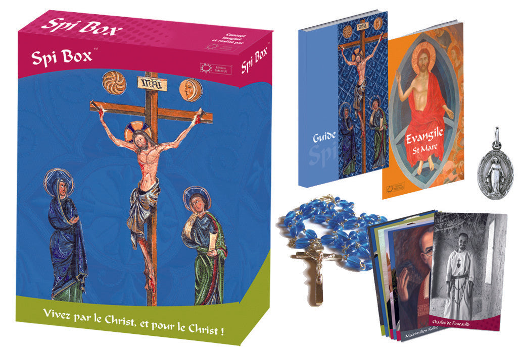 Véritable boîte à outils pour la prière comprenant : - Guide Spi : recueil 128 p. de prière, illustré - Evangile selon St Marc - 1 chapelet indécrochable - 1 médaille miraculeuse - 8 carte de vie de saints et de prière Dans ce coffret le chapelet et la couverture du Guide Spi sont bleus !