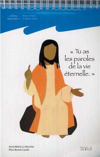 S'inscrivant dans le cheminement de catéchèse Viens, suis-moi, l'album Tu as les paroles de la vie éternelle est destiné aux enfants en troisième année de catéchèse (9-10 ans). Il leur permet, pour cette année axée sur la Parole de Dieu, de réaliser par eux-mêmes leur album en suivant la technique du scrapbook. À travers plusieurs étapes, ils approfondissent ainsi leur communion avec le Christ et entrent dans l'histoire du Salut.