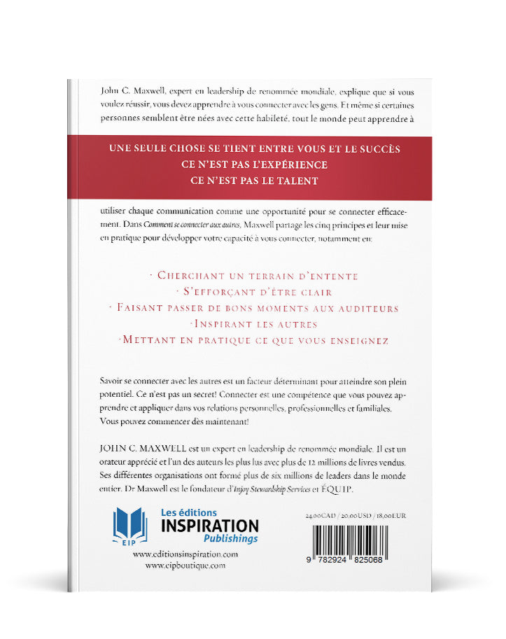 John C. Maxwell, expert en leadership de renommée mondiale, explique que si vous voulez réussir, vous devez apprendre à vous connecter avec les gens. Et même si certaines personnes semblent être nées avec cette habileté, tout le monde peut apprendre à utiliser chaque communication comme une opportunité pour se connecter aux autres. Dans Comment se connecter aux autres, Maxwell partage les cinq principes et leur mise en pratique pour développer votre capacité à vous connecter aux autres, notamment en:
