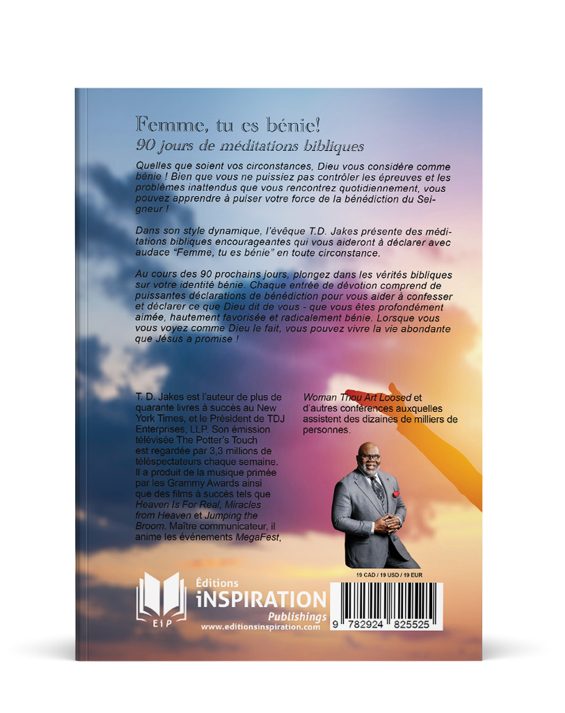 Ce livre de TD Jakes présente des méditations bibliques encourageantes qui vous aideront à déclarer avec audace “Femme, tu es bénie” en toute circonstance. Lorsque vous vous voyez comme Dieu le fait, vous pouvez vivre la vie abondante que Jésus a promise !